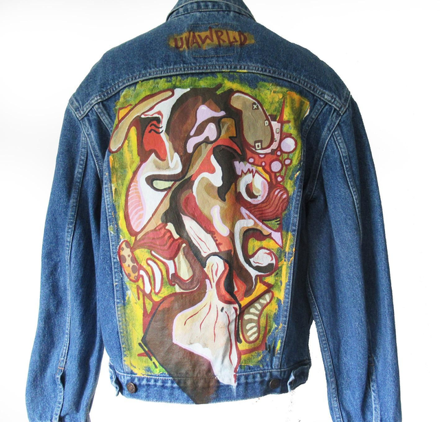 Hand Painted Levis Denim Jacket featuring an Uvawrld design. A one off Abstract autumnal piece Size Medium